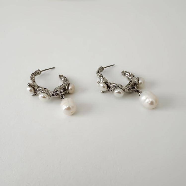 Drip Pearl Earrings - Silver